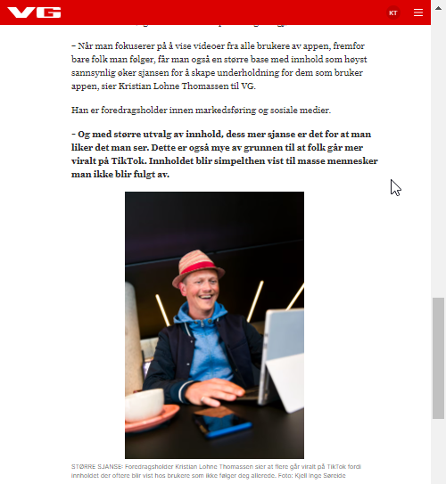 “Kristian er en engasjert og inspirerende foredragsholder. På vårt arrangement snakket han på en enkel og levende måte om trender i sosiale medier, noe som virkelig traff publikum. Som publikum fikk vi ny innsikt, kunnskap, inspirasjon og gode tips. Kan absolutt anbefale Kristian videre!” - Tina Abrahamsen, Business Region Kristiansand